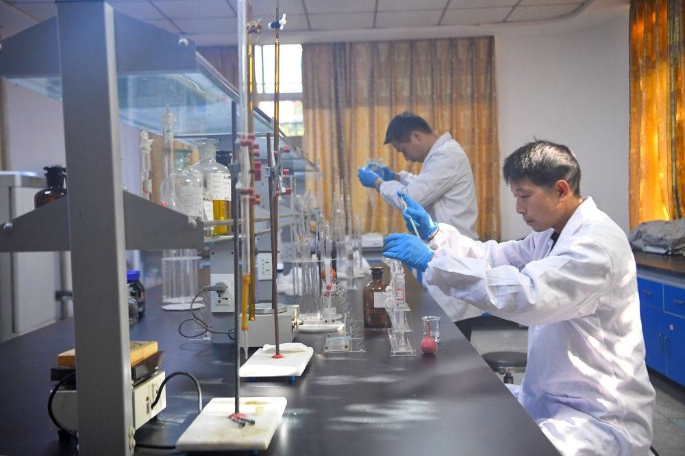 2024年11月28日,在南陽(yáng)市生態(tài)環(huán)境局淅川分局環(huán)境監(jiān)測(cè)站,工作人員在進(jìn)行水質(zhì)監(jiān)測(cè)。