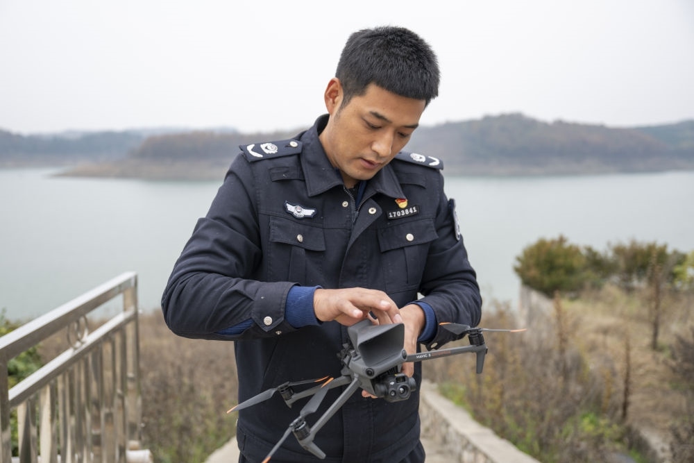 2024年12月8日,丹江口市庫(kù)區(qū)綜合執(zhí)法大隊(duì)六中隊(duì)執(zhí)法隊(duì)員在操作無人機(jī)。