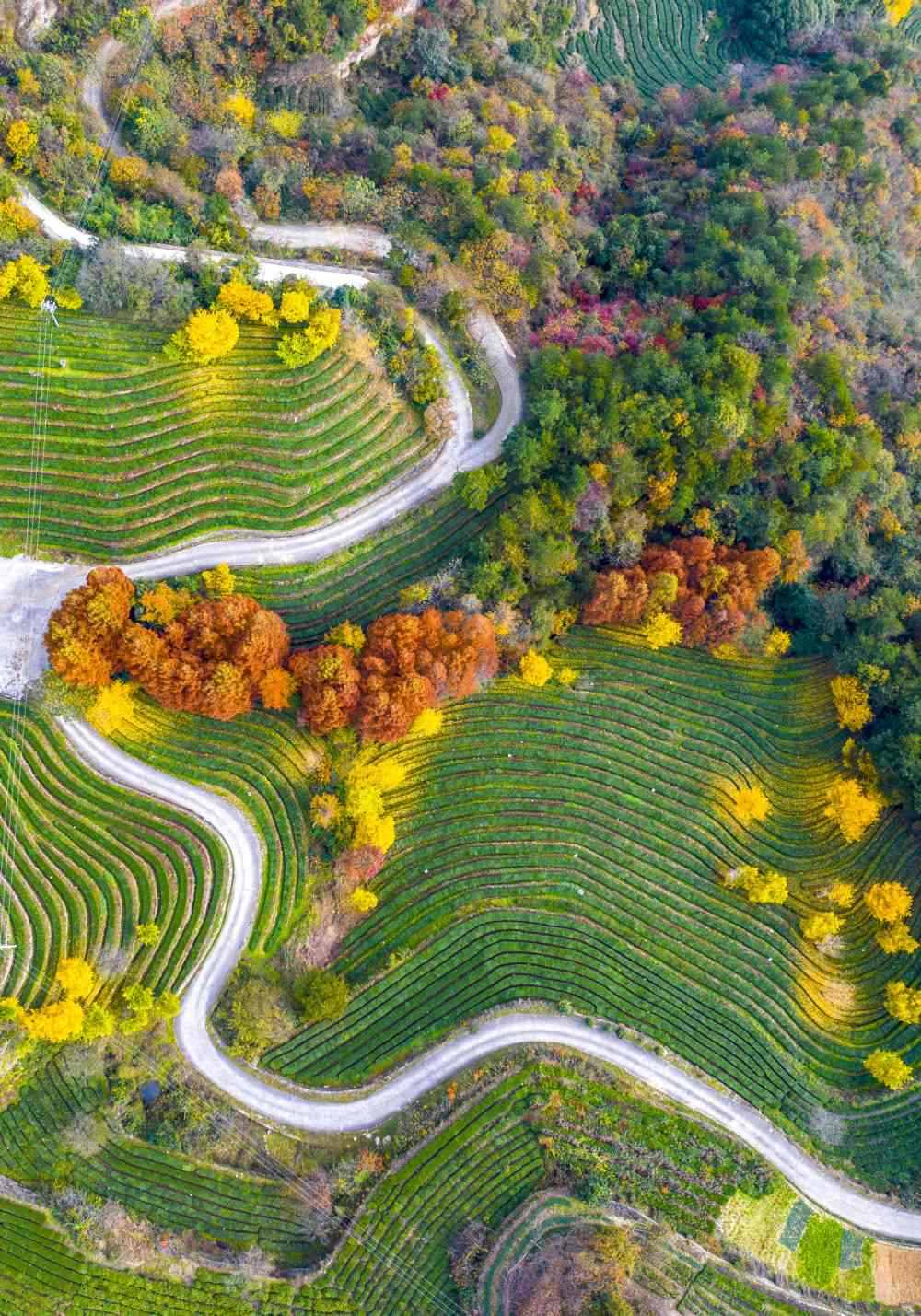 2023年11月24日在十堰市武當(dāng)山旅游經(jīng)濟(jì)特區(qū)八仙觀村拍攝的茶園(無人機(jī)照片)。