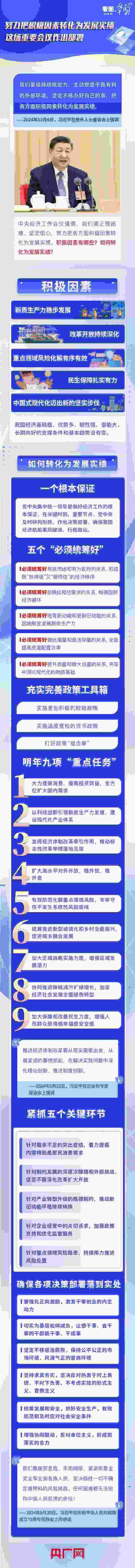 今年是實現(xiàn)“十四五”規(guī)劃目標(biāo)任務(wù)的關(guān)鍵一年。“經(jīng)濟社會發(fā)展主要目標(biāo)任務(wù)即將順利完成”“一年來的發(fā)展歷程很不平凡,成績令人鼓舞”……此次會議對即將過去的2024年經(jīng)濟工作作出總結(jié)分析。明年中國經(jīng)濟怎么干?《看圖學(xué)習(xí)》欄目梳理總書記部分重要論述,結(jié)合中央經(jīng)濟工作會議要點,與您一起學(xué)習(xí)領(lǐng)悟。