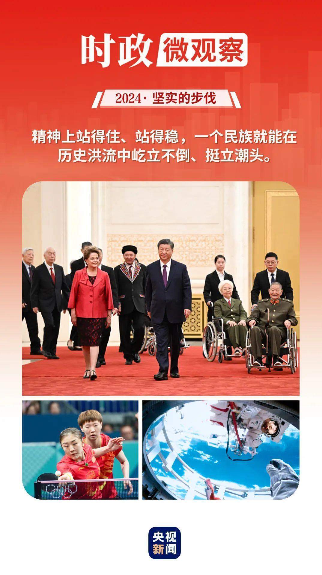 回望2024年,黨的二十屆三中全會(huì)標(biāo)記下改革開放進(jìn)程又一重要?dú)v史性時(shí)刻;我們熱烈慶祝中華人民共和國成立75周年 、澳門回歸祖國25周年,匯聚砥礪前行的強(qiáng)大力量;中國體育代表團(tuán)取得夏季奧運(yùn)會(huì)境外參賽最好成績,生動(dòng)詮釋了新時(shí)代中國精神;太空遨游、智能迭代、長橋飛渡、巨輪啟航,中國的創(chuàng)新動(dòng)力、發(fā)展活力勃發(fā)奔涌……中國人民更加自信自強(qiáng),奮斗精神更加昂揚(yáng)。