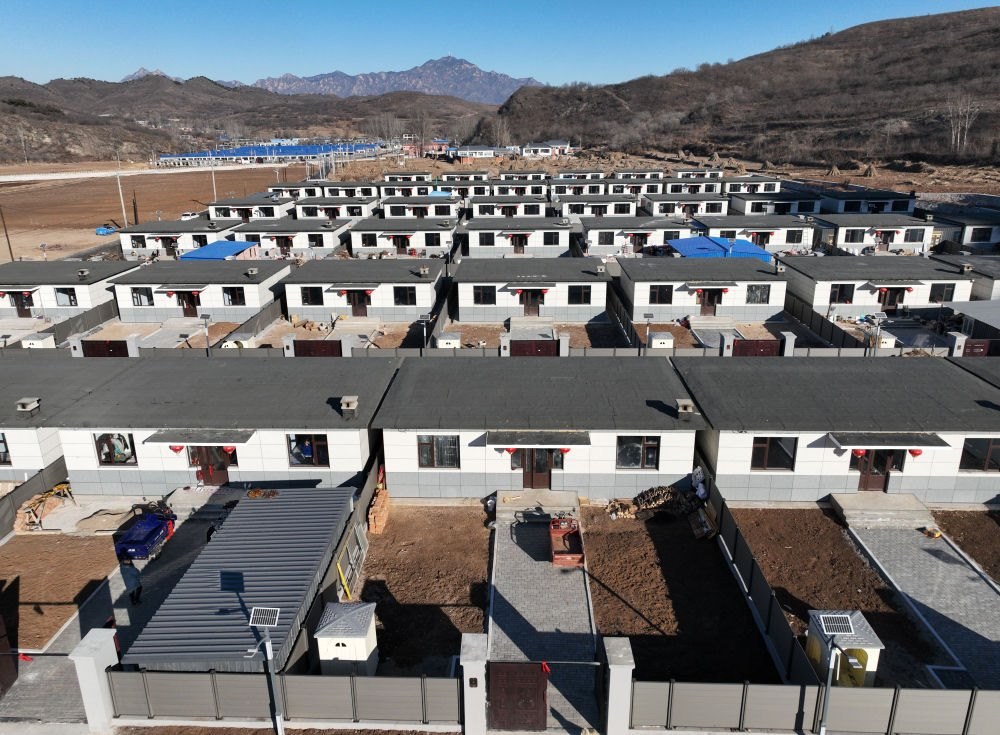 這是遼寧省葫蘆島市建昌縣黑山科鄉(xiāng)楊樹底下村的集中安置重建住房(2024年12月17日攝,無人機照片)。新華社記者 李鋼 攝