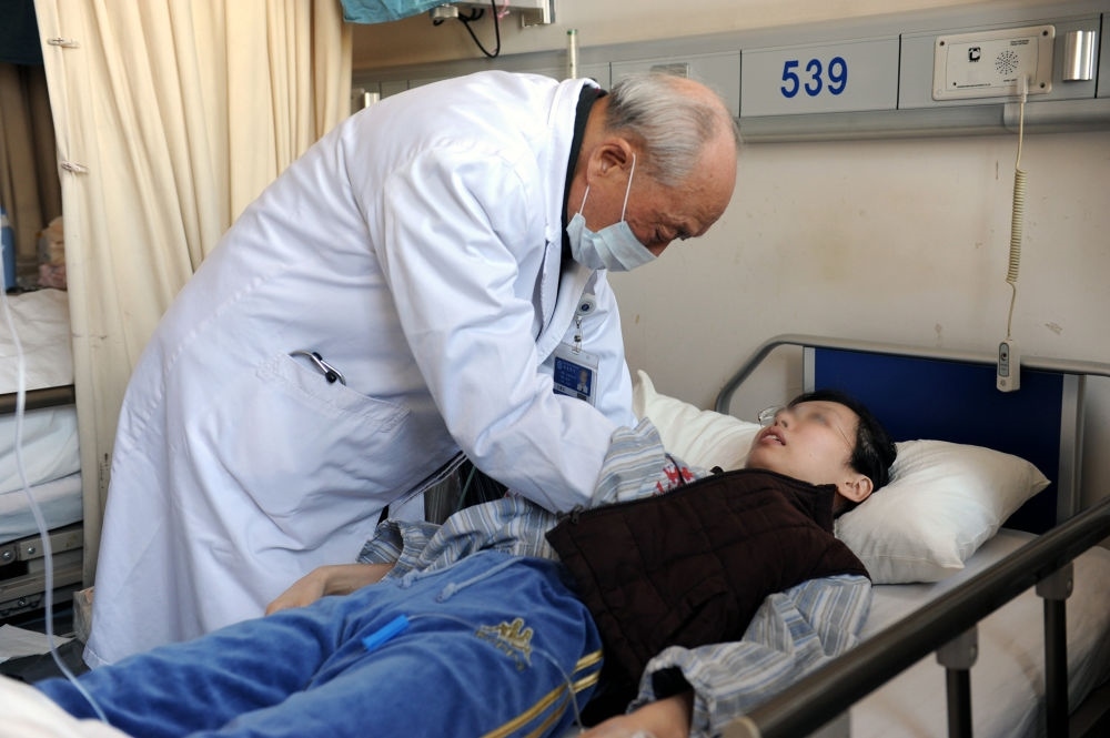 瑞金醫(yī)院終身教授王振義在上海瑞金醫(yī)院為病人看?。ㄙY料照片)。新華社發(fā)