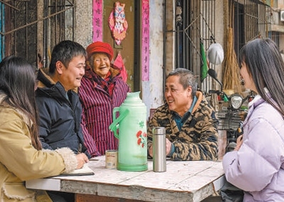 四川省自貢市沿灘區(qū)鄧關(guān)街道鹽業(yè)社區(qū)干部聽取群眾對老舊小區(qū)改造的意見建議。