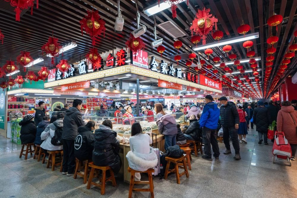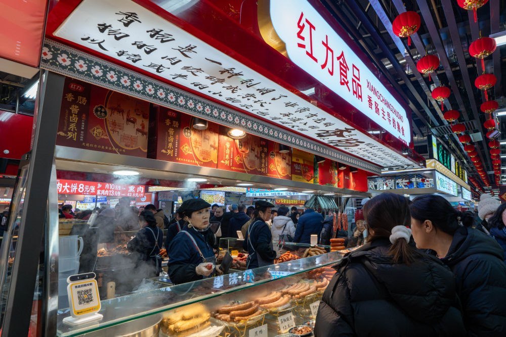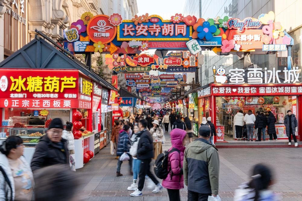 2025年1月22日,游客在沈陽(yáng)中街長(zhǎng)安寺胡同小吃街游玩。