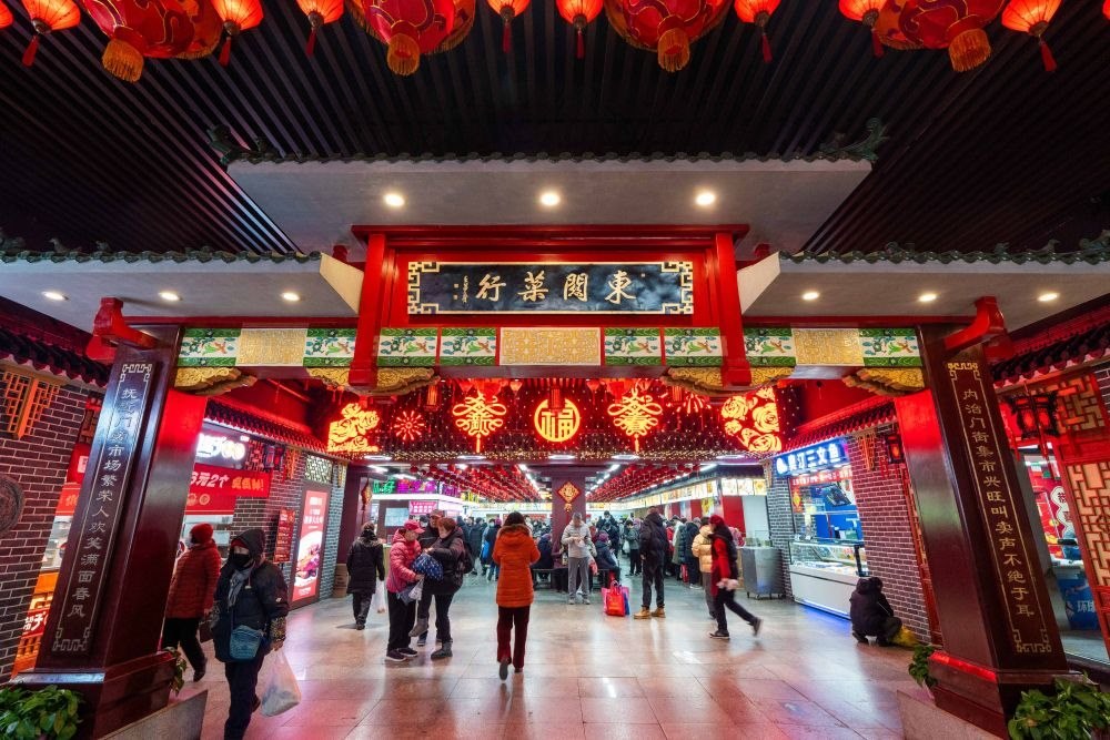 2025年1月22日,游客在沈陽(yáng)故宮非遺年貨市集游覽消費(fèi)。