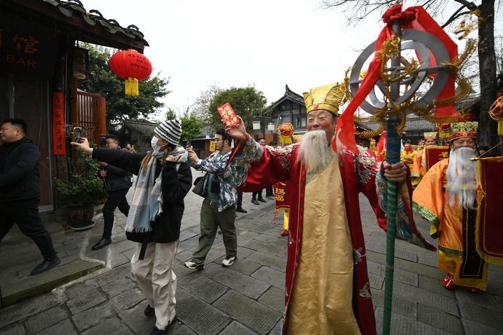 打坱塵、淘檐溝、掛年紅、搶銀水、看燈戲……在閬中古城過(guò)大年,來(lái)自天南地北的游客沉浸式感受中國(guó)年。