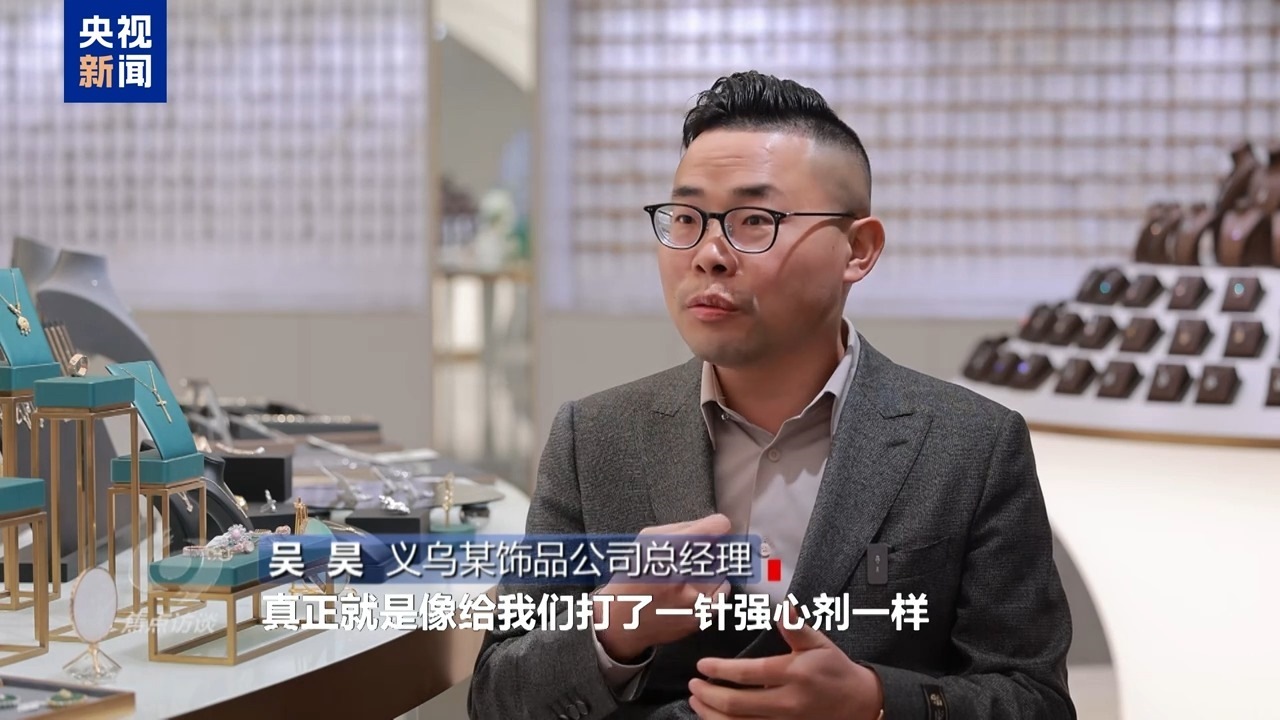義烏某飾品公司總經(jīng)理 吳昊:總書記提出了國內(nèi)國際雙循環(huán)的事,對我們企業(yè)來說,真正就是像給我們打了一個強(qiáng)心劑一樣,就是堅定了我們未來發(fā)展方向,企業(yè)就沒有那么迷茫了。