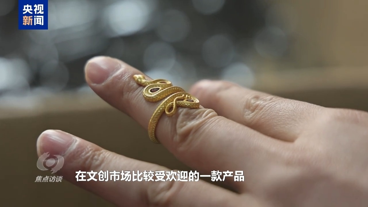 義烏某飾品公司總經(jīng)理 吳昊:這個是我們給國家博物館做的一款新年生肖款,你看看,這個是一款戒指,就適合當(dāng)下年輕人,在文創(chuàng)市場比較受歡迎的一款產(chǎn)品。