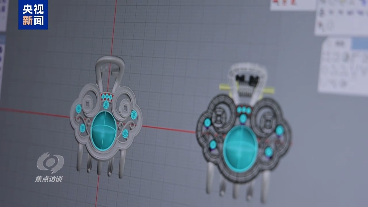 義烏某飾品公司產(chǎn)品設(shè)計師 周亮:梅蘭竹菊有傳統(tǒng)的一些寓意,然后這些圖案的外形,也是根據(jù)中國傳統(tǒng)樣式來的。材料方面,我主要是想體現(xiàn)中國的那種翡翠的感覺。