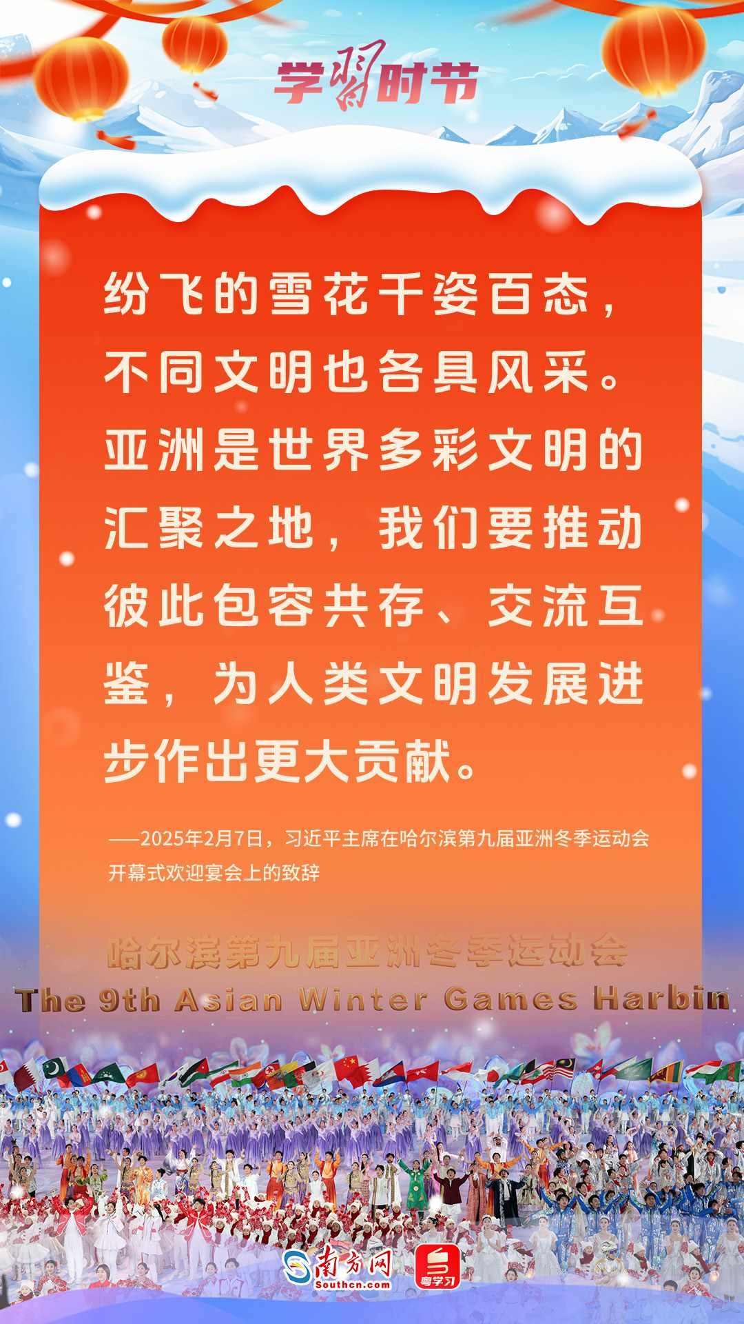 當(dāng)下,亞冬會(huì)正在如火如荼地舉行,多個(gè)項(xiàng)目的角逐進(jìn)入白熱化階段。本次體育盛會(huì)正值中國(guó)年,冰雪奇緣與東方文韻交織,奧林匹克精神與中華優(yōu)秀傳統(tǒng)文化同頻共振,共同傳遞著對(duì)和平、發(fā)展、友誼的愿望和追求。