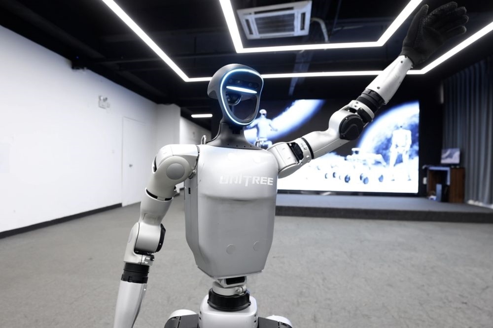 2024年11月7日在杭州宇樹科技有限公司拍攝的的Unitree G1人形智能體。近年來,國內(nèi)民營科技企業(yè)對機器人、人工智能等領(lǐng)域的研發(fā),大幅提升了生產(chǎn)效率,帶動相關(guān)學(xué)科發(fā)展,培養(yǎng)跨領(lǐng)域創(chuàng)新人才,為加快培育新質(zhì)生產(chǎn)力注入了強勁動力。