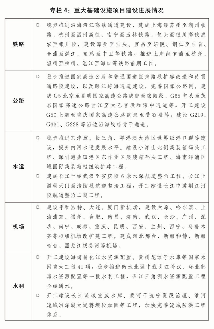 五是加快完善現(xiàn)代化基礎(chǔ)設(shè)施體系。高質(zhì)量推進(jìn)川藏鐵路等重大項(xiàng)目建設(shè),加快構(gòu)建國(guó)家水網(wǎng)工程體系,高水平共建西部陸海新通道。深入實(shí)施降低全社會(huì)物流成本專(zhuān)項(xiàng)行動(dòng)。持續(xù)推進(jìn)國(guó)家物流樞紐、國(guó)家骨干冷鏈物流基地、國(guó)家綜合貨運(yùn)樞紐體系、大宗商品資源配置樞紐等布局建設(shè)。加快完善應(yīng)急物流體系。深入推進(jìn)公路水路交通基礎(chǔ)設(shè)施數(shù)字化轉(zhuǎn)型升級(jí)。推動(dòng)各種運(yùn)輸方式規(guī)則標(biāo)準(zhǔn)統(tǒng)一協(xié)同,加快多式聯(lián)運(yùn)“一單制、一箱制”應(yīng)用。