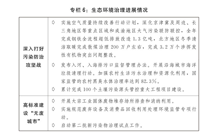 (九)堅(jiān)定不移推進(jìn)生態(tài)文明建設(shè),全面綠色轉(zhuǎn)型取得積極進(jìn)展。出臺(tái)加快經(jīng)濟(jì)社會(huì)發(fā)展全面綠色轉(zhuǎn)型的意見(jiàn),持續(xù)深入打好污染防治攻堅(jiān)戰(zhàn),積極穩(wěn)妥推進(jìn)碳達(dá)峰碳中和,大力實(shí)施全面節(jié)約戰(zhàn)略,美麗中國(guó)建設(shè)成效明顯。
