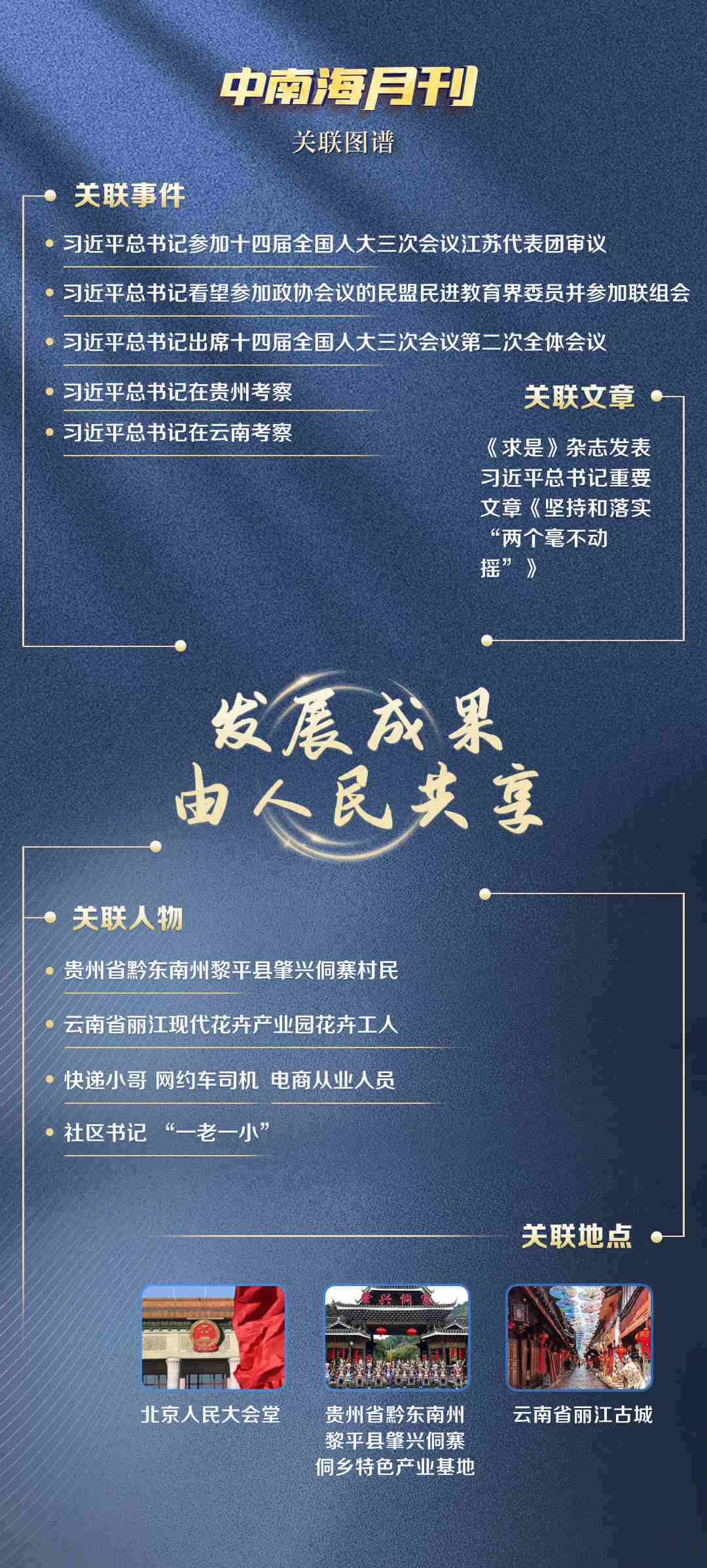 觀察央視網(wǎng)I學習數(shù)據(jù)庫生成的3月關聯(lián)圖譜,無論是對高質(zhì)量發(fā)展的謀篇布局,還是推動優(yōu)秀傳統(tǒng)文化守正創(chuàng)新,“發(fā)展成果由人民共享”的理念始終貫穿其中,“致廣大而盡精微”的治理方法也清晰可見。