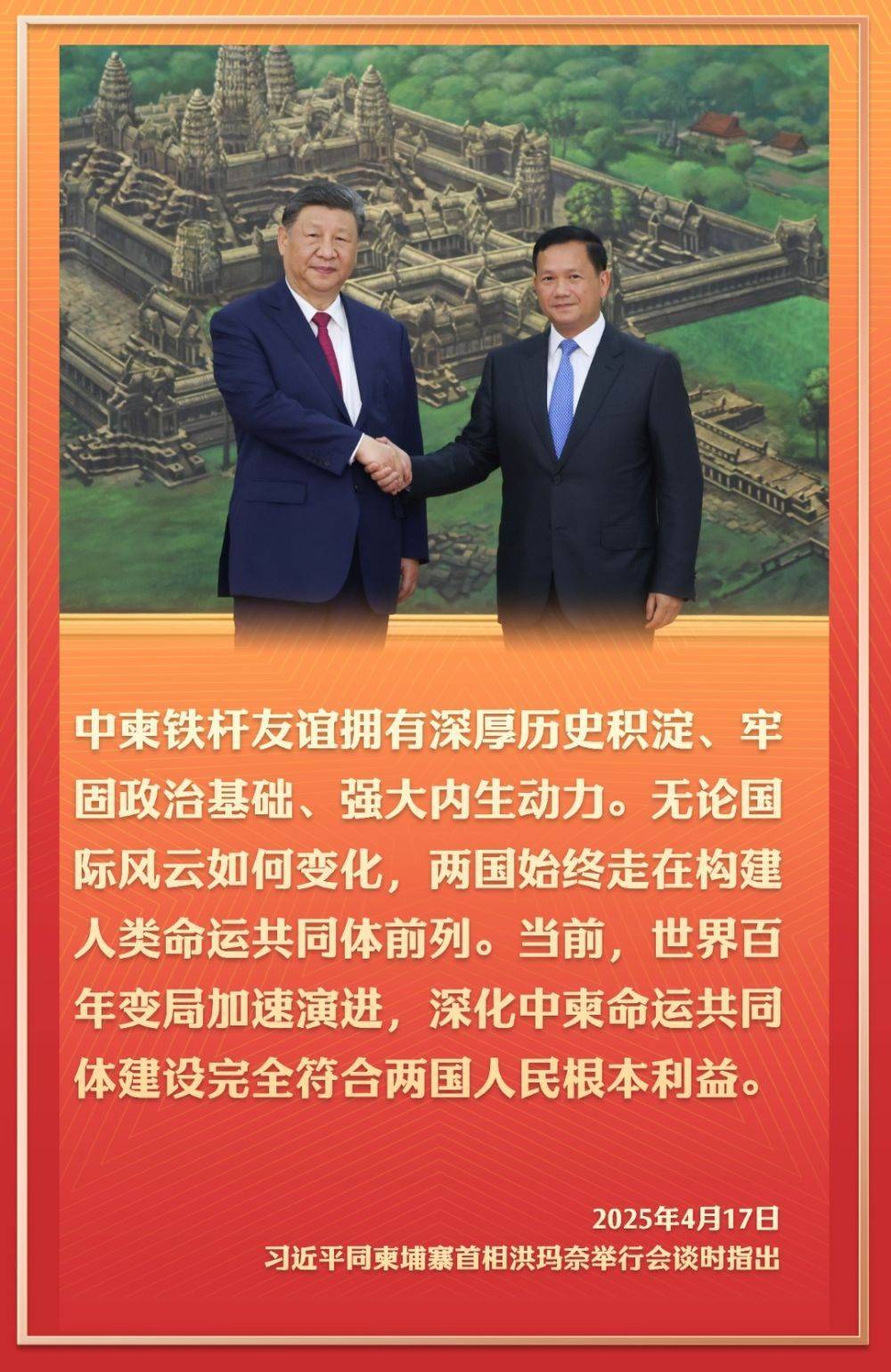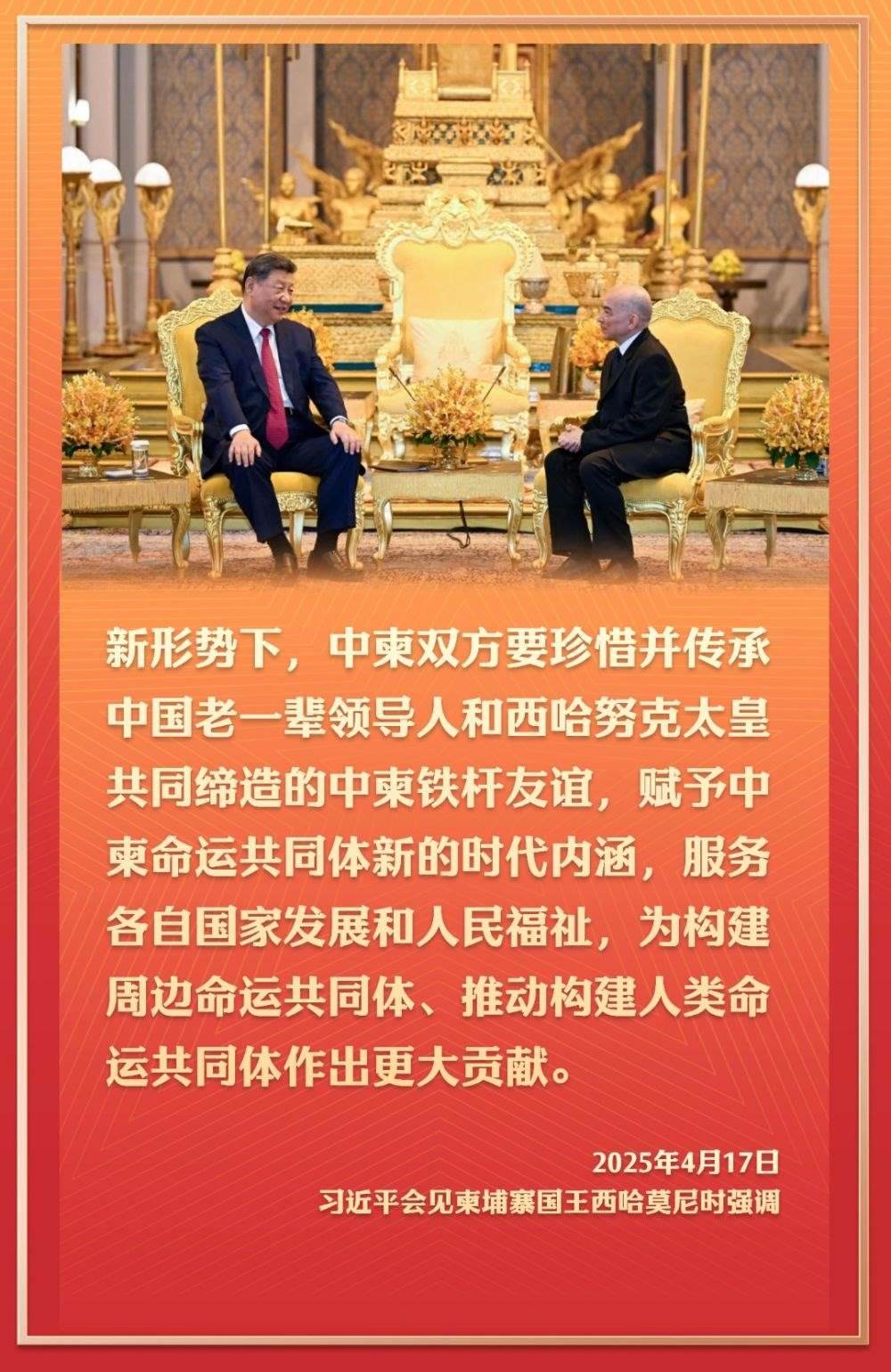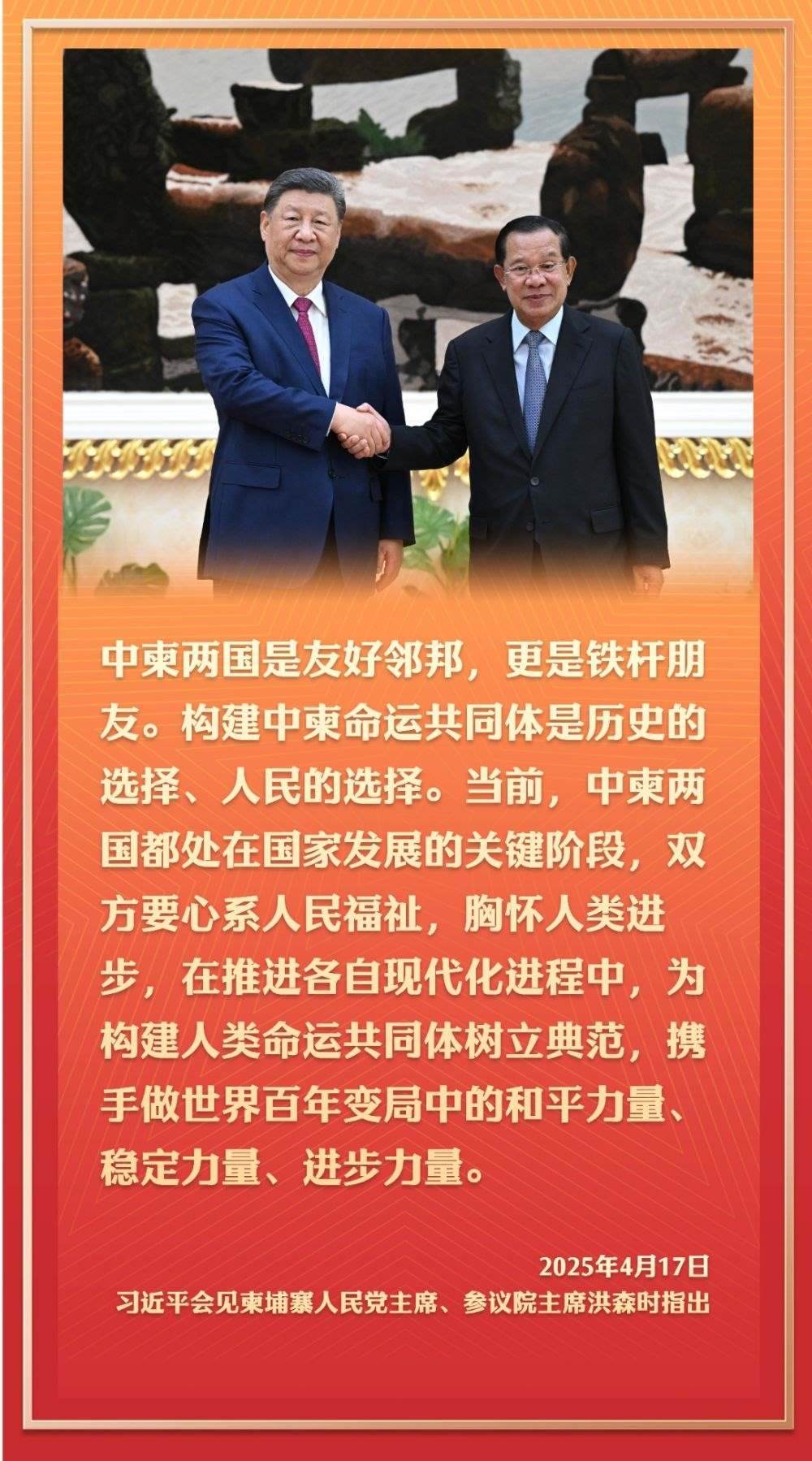 4月17日,應(yīng)柬埔寨國(guó)王西哈莫尼邀請(qǐng),國(guó)家主席習(xí)近平抵達(dá)金邊,開(kāi)始對(duì)柬埔寨進(jìn)行國(guó)事訪問(wèn)。