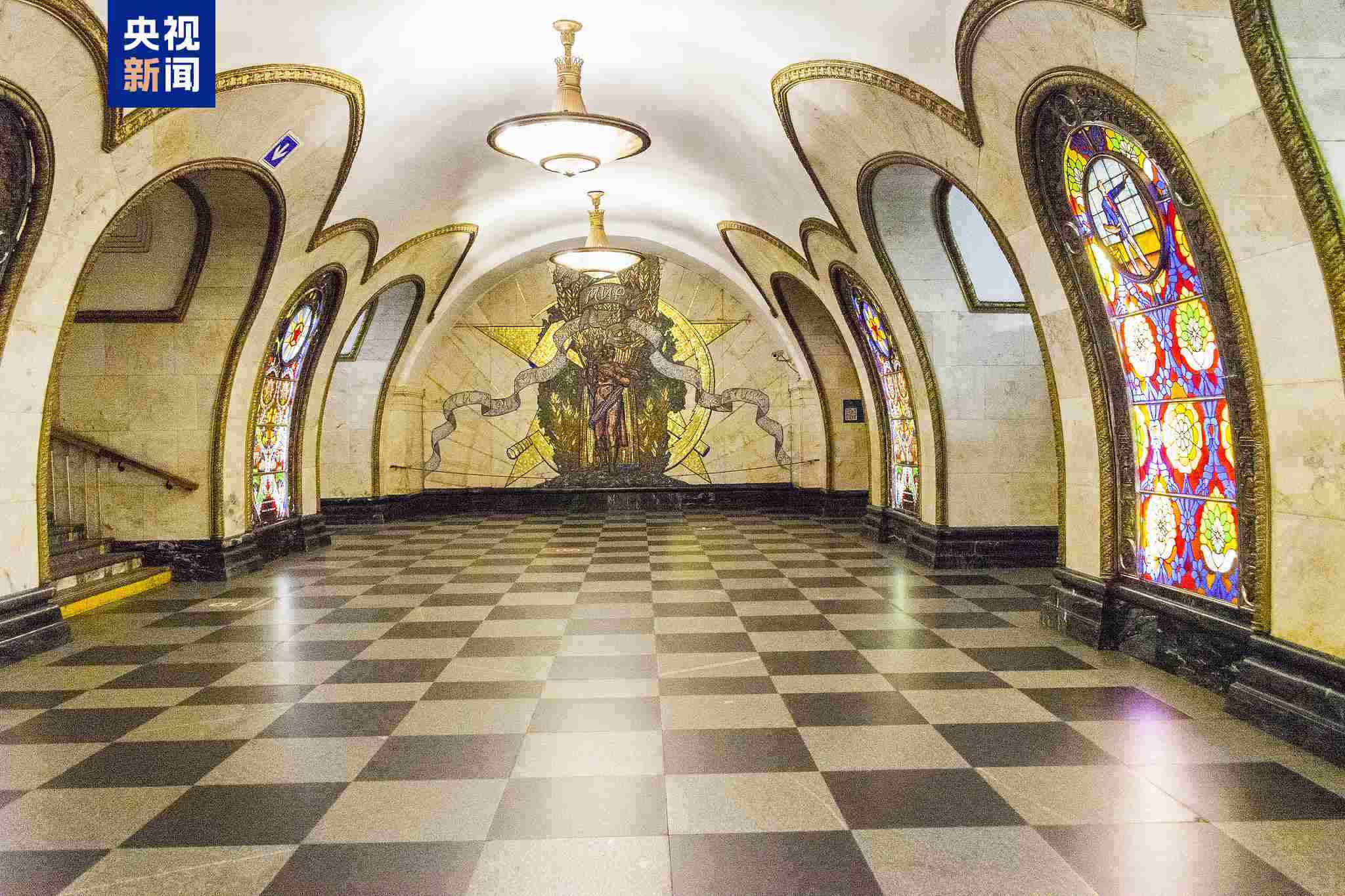 △莫斯科地鐵米丘林大街站由中企中標建設,地鐵站有紅色立柱、團壽紋、祥云等中國元素裝飾。