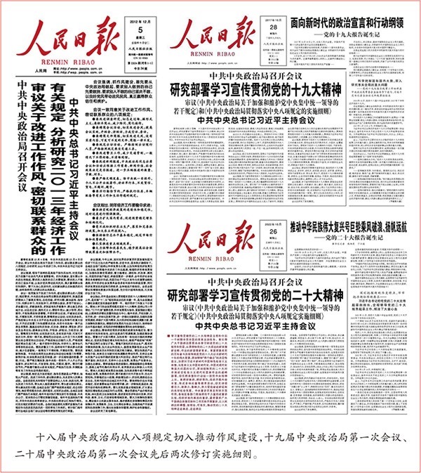 2012年12月4日,黨的十八大閉幕后不到一個(gè)月,習(xí)近平總書記主持召開中央政治局會(huì)議,審議通過《十八屆中央政治局關(guān)于改進(jìn)工作作風(fēng)、密切聯(lián)系群眾的八項(xiàng)規(guī)定》,從改進(jìn)調(diào)查研究等八個(gè)方面立下規(guī)矩,開啟了中國(guó)共產(chǎn)黨激濁揚(yáng)清的作風(fēng)建設(shè)新征程。