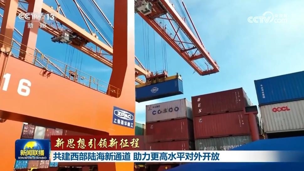 央視網(wǎng)消息(新聞聯(lián)播):建設(shè)西部陸海新通道,是以習(xí)近平同志為核心的黨中央作出的一項重大決策。習(xí)近平總書記指出,要大力推進西部陸海新通道建設(shè),推動沿線地區(qū)開發(fā)開放,深度融入共建“一帶一路”。牢記總書記囑托,今年以來,沿線各地聚焦改革創(chuàng)新、數(shù)字賦能、產(chǎn)業(yè)協(xié)同三大重點任務(wù),高水平建設(shè)西部陸海新通道,助力加快形成“陸海內(nèi)外聯(lián)動、東西雙向互濟”的對外開放新格局。