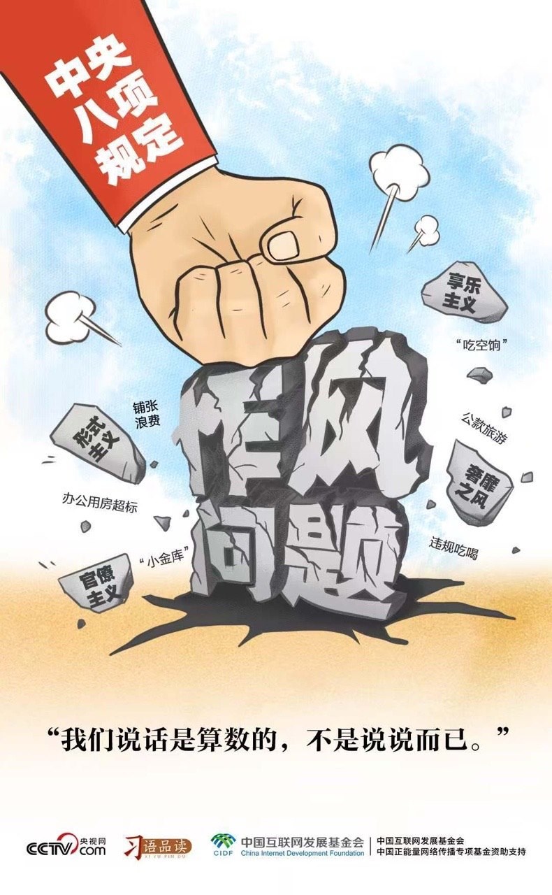 2012年12月,習(xí)近平總書記在主持中央政治局會議,審議通過《十八屆中央政治局關(guān)于改進(jìn)工作作風(fēng)、密切聯(lián)系群眾的八項(xiàng)規(guī)定》時(shí)說了這樣一番話:“我們說了不是白說,說了必須做到,把文件上寫的內(nèi)容一一落到實(shí)處?!?/p>