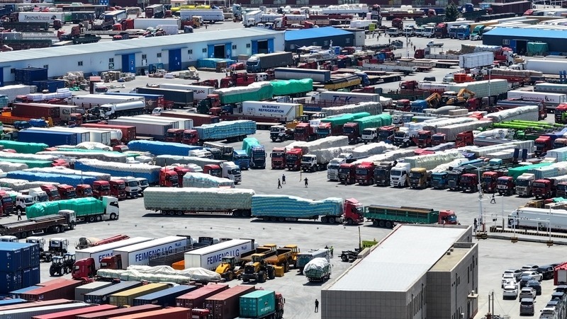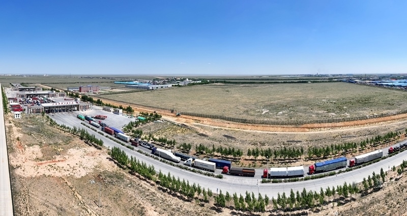 6月22日拍攝的內(nèi)蒙古二連浩特公路口岸(無人機照片)。