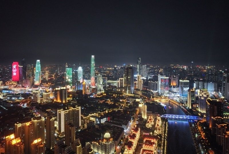 世界經(jīng)濟論壇第十六屆新領(lǐng)軍者年會(又稱“夏季達(dá)沃斯論壇”)即將在天津開幕。夜色下的天津燈光璀璨,多座地標(biāo)性建筑點亮樓體燈光,流光溢彩迎接中外賓朋。