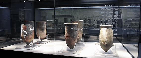 “這是一件出土于安徽蒙城新石器時代尉遲寺遺址的大口陶尊,距今大約4800年?!敝v解員指著一件陶器展品,“它的特別之處是器物上有著刻畫符號,分別是‘日’‘月’‘山’形。抽象的表達和組合,已經(jīng)超越了簡單的圖畫,使我們看到了漢字的雛形?!?/p>