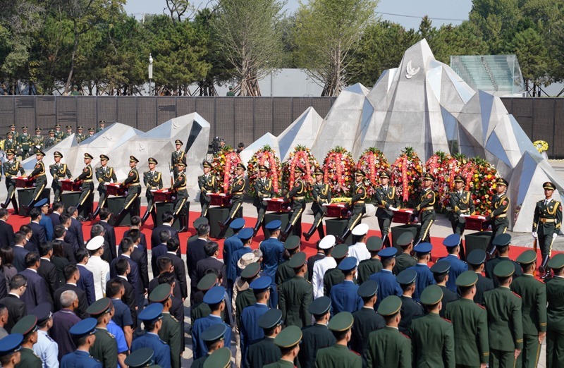 9月13日,第十二批在韓中國人民志愿軍烈士遺骸安葬儀式在沈陽抗美援朝烈士陵園舉行。30位志愿軍烈士英靈,在闊別祖國70多年后回到中華大地安息。