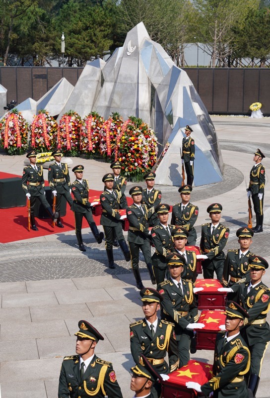 9月13日,禮兵護(hù)送志愿軍烈士棺槨進(jìn)入沈陽抗美援朝烈士陵園安葬地宮。