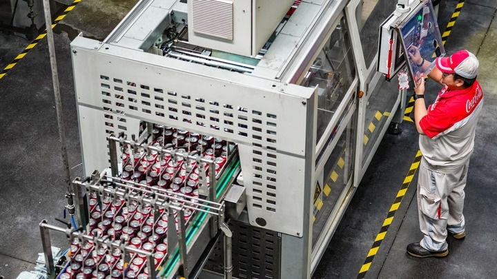 “從空罐上線到清洗、罐裝、包裝、碼垛,全部都自動(dòng)化實(shí)現(xiàn)?!敝屑Z可口可樂(lè)飲料(貴州)有限公司生產(chǎn)技術(shù)部兼安全質(zhì)量環(huán)保部總監(jiān)周林林介紹,公司的自動(dòng)化易拉罐裝飲料生產(chǎn)線每小時(shí)可灌裝飲料24000罐,“未來(lái)還要不斷升級(jí)”。