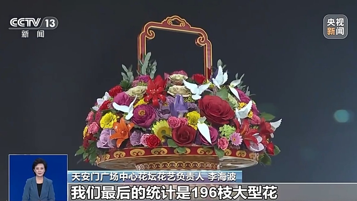 總臺(tái)記者 魏雨彤:今年的“祝福祖國”花籃籃體高16米,籃內(nèi)選取了18種美好寓意的花卉,比如說月季,首次作為焦點(diǎn)花寓意和平希望,向日葵寓意自由幸福。值得一提的是,今年還首次將靈動(dòng)的動(dòng)物元素融入其中,10只和平鴿正以三種不同的姿態(tài)翱翔于花籃之上,成為今年的新亮點(diǎn)。