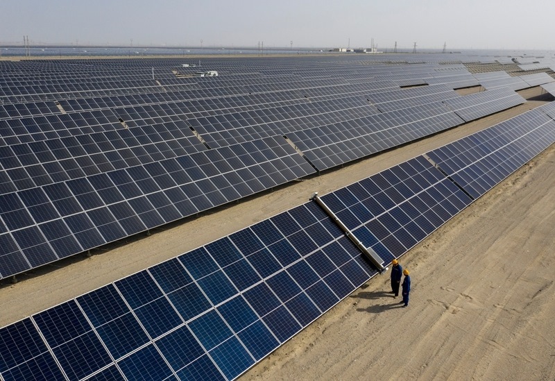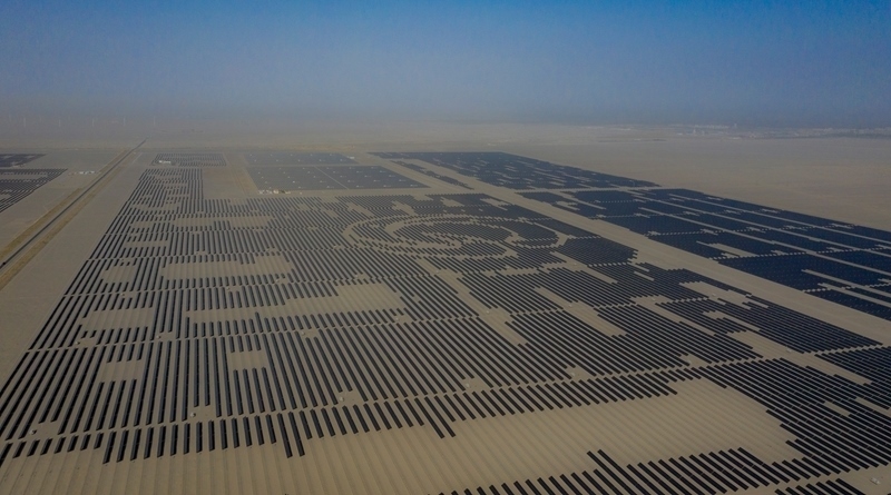 昔日的戈壁荒漠,如今由太陽能光伏板匯聚成“藍色海洋”,由風力發(fā)電機組成“白色森林”,正孕育著無限“風光”。
