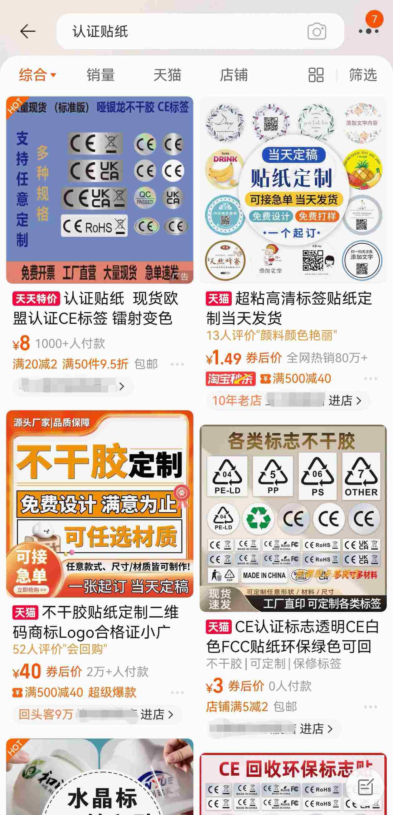 不過(guò),這卻變成了一些人眼中的“商機(jī)”。中國(guó)新聞網(wǎng)《民生調(diào)查局》記者在部分電商平臺(tái)發(fā)現(xiàn),“3C貼紙”目前仍有售賣,甚至可以隨意定制。