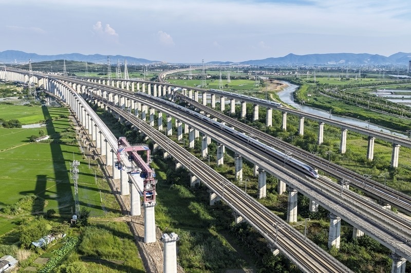 時(shí)下,中鐵四局巢馬城際鐵路架梁施工現(xiàn)場(chǎng)一派繁忙,施工人員奮戰(zhàn)在建設(shè)一線,確保重點(diǎn)鐵路工程建設(shè)穩(wěn)步推進(jìn)。巢馬城際鐵路是國(guó)家“八縱八橫”高鐵網(wǎng)滬漢蓉快速通道合肥至上海間的重要組成部分,設(shè)計(jì)時(shí)速350公里。