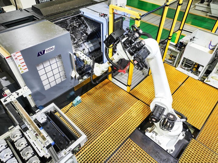 這是2025年5月9日在位于重慶市北碚區(qū)的重慶順多利機(jī)車有限責(zé)任公司精工基地拍攝的自動(dòng)化生產(chǎn)作業(yè)現(xiàn)場(無人機(jī)照片)。新華社記者 王全超 攝