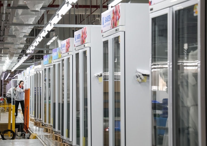 這是在西科冷鏈廣東江門制造基地的產(chǎn)線上,工人對(duì)一批出口海外的商用冷柜進(jìn)行外觀檢查(2025年3月22日攝)。新華社記者 劉大偉 攝