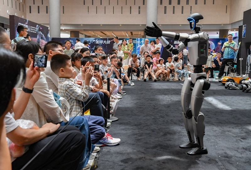 當(dāng)日,浙江省金華市金華之光文化廣場(chǎng)科技館舉辦AI智能機(jī)器人科普展,吸引了許多家長(zhǎng)帶著小朋友與人形機(jī)器人、智能機(jī)器狗、下棋機(jī)器人、足球機(jī)器人等互動(dòng),沉浸式感受人工智能技術(shù)的魅力,樂享暑期生活。