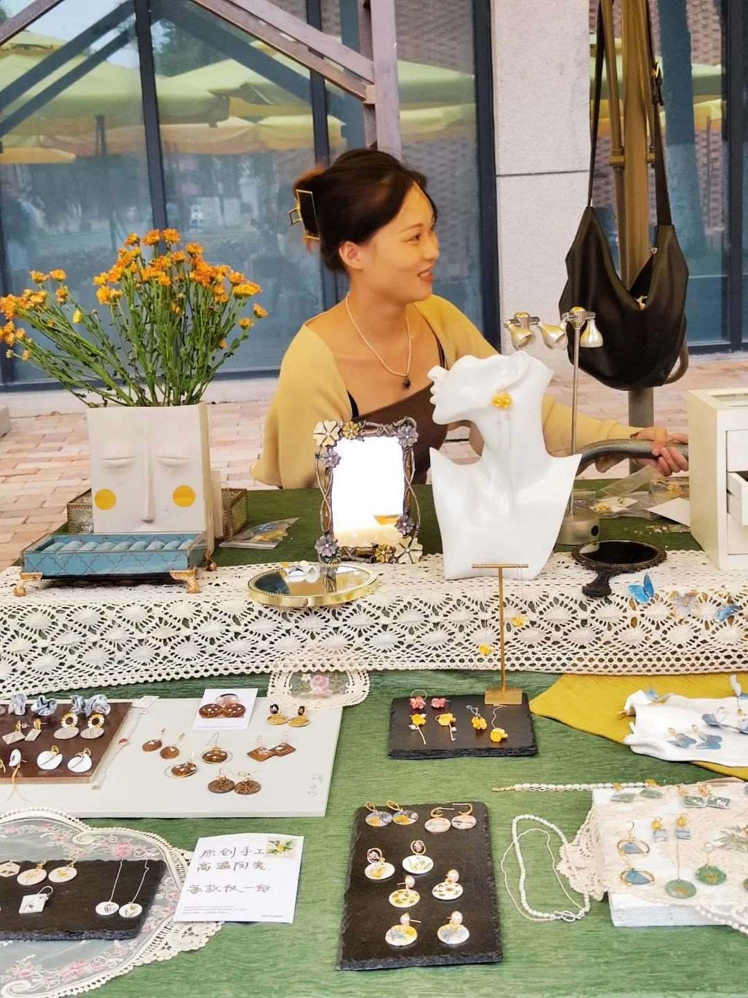 畢業(yè)于湖北美術(shù)學(xué)院陶瓷藝術(shù)專業(yè)的楊帆,2020年放棄本校讀研的機(jī)會(huì),選擇到江西景德鎮(zhèn)創(chuàng)業(yè),主打陶瓷首飾創(chuàng)作?!耙郧澳芟氲降木蜆I(yè)方向是當(dāng)美術(shù)老師或者開陶吧,直到在景德鎮(zhèn)看到另一種可能?!睏罘f,大四那年,景德鎮(zhèn)的陶溪川創(chuàng)意集市邀請(qǐng)她們學(xué)校師生去擺攤,讓她看到了一種新生活——夜幕降臨后,幾百個(gè)年輕人一起出攤把作品賣出去。