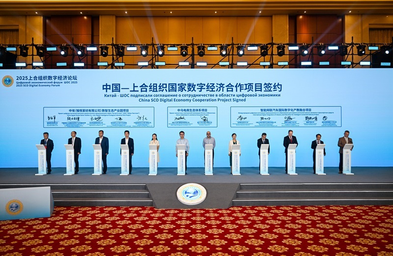 7月11日在論壇現(xiàn)場拍攝的中國—上合組織國家數字經濟合作項目簽約儀式。