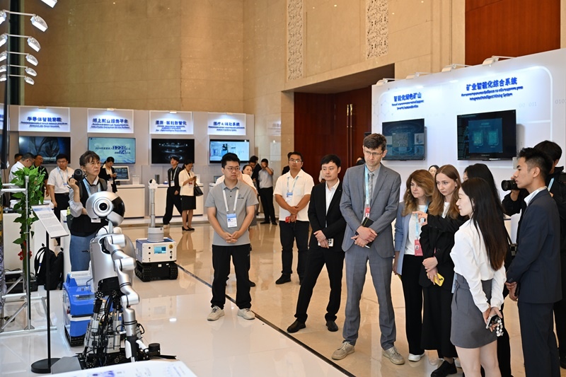 7月11日,參會嘉賓在2025上合組織數字經濟論壇互動體驗區(qū)參觀。