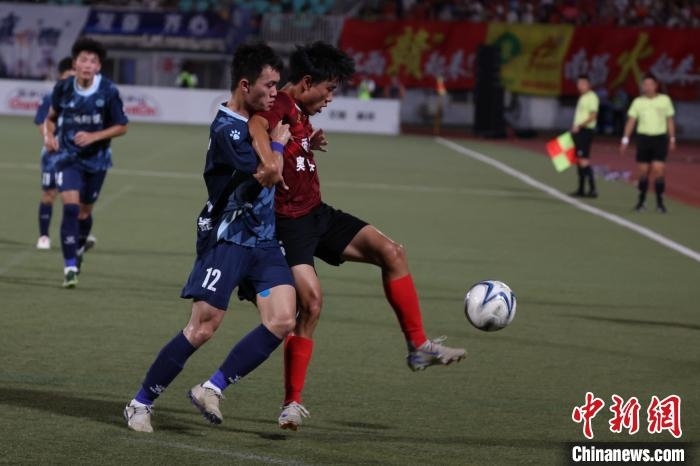 7月12日晚,“贛超”揭幕戰(zhàn)由東道主南昌隊(duì)迎戰(zhàn)景德鎮(zhèn)隊(duì),雙方球員在綠茵場上激烈比拼。中新社記者 劉占昆 攝