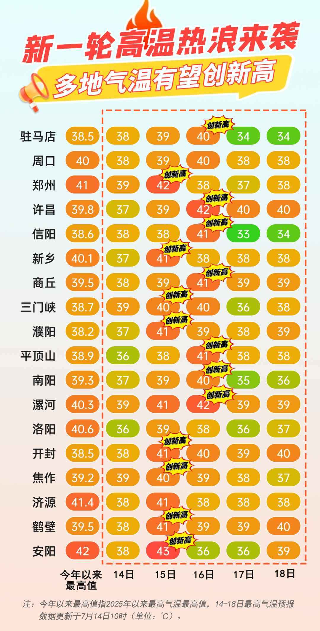 昨日(14日),河南多地氣溫沖破40℃,省、市兩級(jí)氣象臺(tái)相繼拉響最高級(jí)別的高溫紅色預(yù)警。據(jù)省氣象臺(tái)數(shù)據(jù),當(dāng)天全省共發(fā)布128條高溫預(yù)警,71個(gè)縣市氣溫高于40℃。