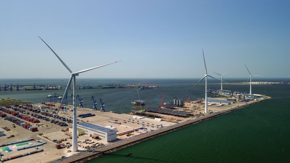 “4臺(tái)風(fēng)力發(fā)電機(jī)一年可發(fā)電約7000萬(wàn)千瓦時(shí),足以覆蓋碼頭設(shè)備及停靠船舶的用電需求,冗余電量還能上網(wǎng)銷售?!鄙綎|省港口集團(tuán)濰坊港有限公司黨支部書(shū)記、總經(jīng)理孫超說(shuō),濰坊港已形成風(fēng)、光、氫“多能互補(bǔ)”的用能結(jié)構(gòu),每年可節(jié)省標(biāo)煤2.1萬(wàn)噸,減少二氧化碳排放5.7萬(wàn)噸。