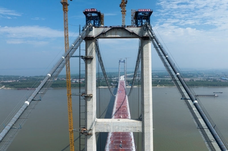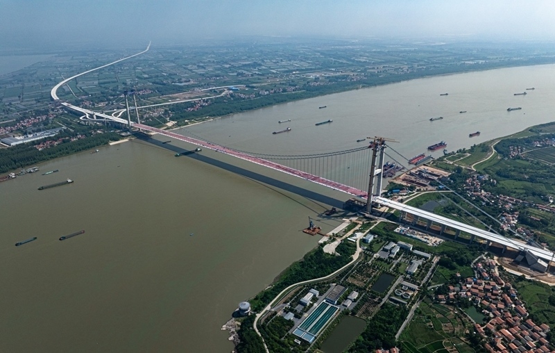 據(jù)了解,新港高速公路武漢雙柳長江大橋及接線工程是國家高速路網(wǎng)武漢都市圈環(huán)線重要組成部分,路線全長35.043公里,其中跨江主橋主跨1430米、寬50.5米,設(shè)計(jì)時(shí)速120公里,采用雙向8車道設(shè)計(jì),是目前長江上在建的最寬鋼箱梁懸索橋。