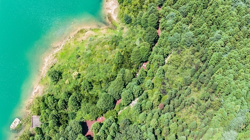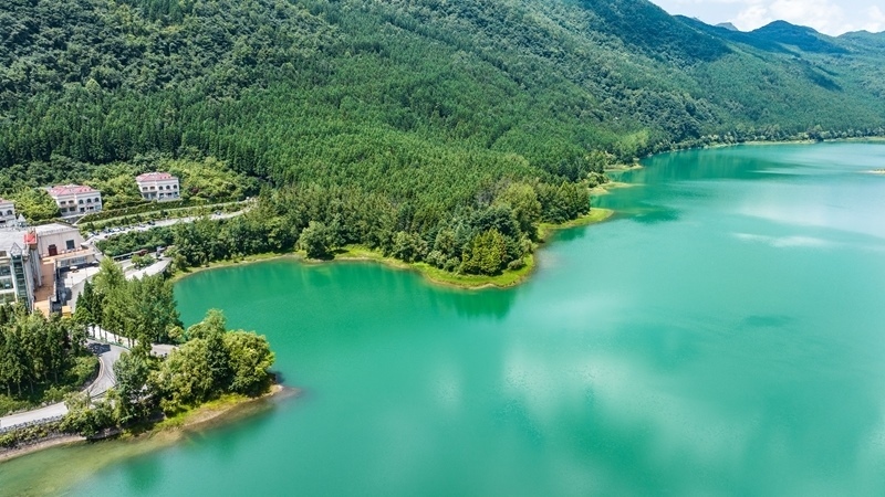 這是7月30日拍攝的六盤水市鐘山區(qū)瑤池公園風(fēng)光(無人機照片)。