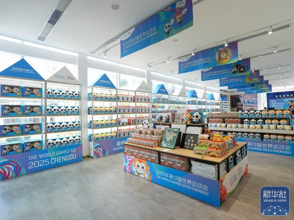 ↑ 這是8月3日在成都世運會運動員村A區(qū)拍攝的官方特許商品零售店內的紀念品。新華社記者 王曦 攝