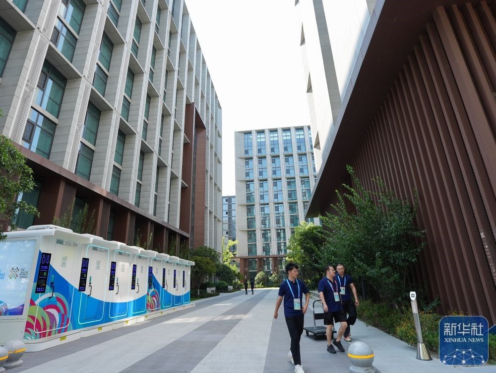 ↑ 這是8月3日在成都世運會運動員村內拍攝的文化活動區(qū)。新華社記者 胥冰潔 攝