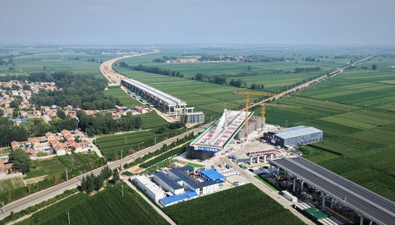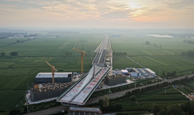 當(dāng)日,在山東德州,由中國鐵建投資集團(tuán)投資建設(shè)、中鐵十四局集團(tuán)承建的德州至上饒高速公路(簡稱“德上高速”)臨清連接線跨京九鐵路斜拉橋?qū)崿F(xiàn)精準(zhǔn)轉(zhuǎn)體對接。該橋采用不對稱矮塔斜拉結(jié)構(gòu),重達(dá)23500噸。