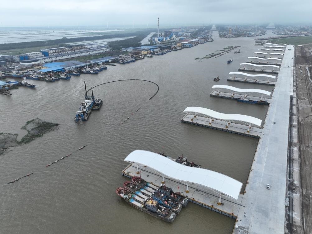 江蘇鹽城黃沙港國家中心漁港二期工程于2024年9月建成試運(yùn)營,包含2022.42米順岸碼頭、16座突堤碼頭及配套設(shè)施,是國內(nèi)首座全自動化漁業(yè)碼頭,配備智能卸貨系統(tǒng)、水產(chǎn)品交易區(qū)、冷凍倉儲等設(shè)施。