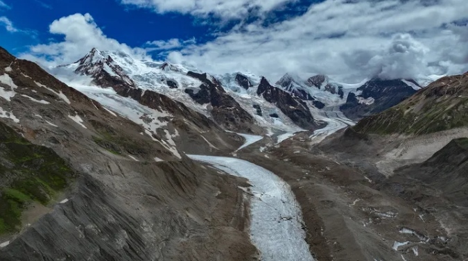 空中俯瞰祥格拉冰川(無人機(jī)照片)。新華社記者 晉美多吉 攝